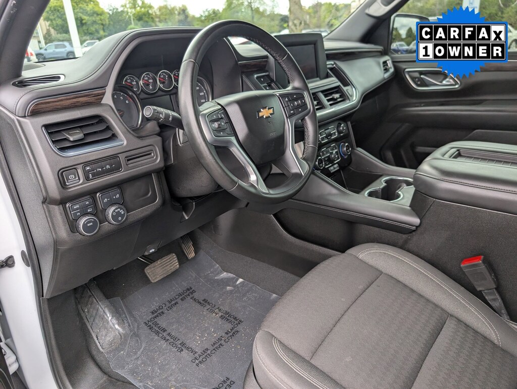 WHEELS, 20" X 9" (50.8 CM X 22.9 CM) PAINTED ALUMINUM WITH MACHINE FACE AND ARGENT METALLIC POCKETS, TIRES, 275/60R20SL ALL-SEASON, BLACKWALL, SUMMIT WHITE, SEATS, FRONT BUCKET (STD), REAR AXLE, 3.23 RATIO, LS PREFERRED EQUIPMENT GROUP Includes Standard Equipment, JET BLACK, PREMIUM CLOTH SEAT TRIM, GVWR, 7500 LBS. (3402 KG) (STD), ENGINE, 5.3L ECOTEC3 V8 with Dynamic Fuel Management, Direct Injection and Variable Valve Timing, includes aluminum block construction (355 hp [265 kW] @ 5600 rpm, 383 lb-ft of torque [518 Nm] @ 4100 rpm) (STD), Wireless Apple CarPlay/Wireless Android Auto. This Chevrolet Tahoe has a dependable Gas V8 5.3L/ engine powering this Automatic transmission.
